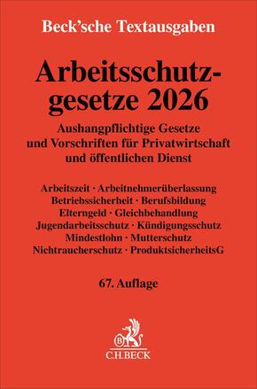 Arbeitsschutzgesetze 2026 - Aushangpflichtige Gesetze und Vorschriften für Privatwirtschaft und öffentlichen Dienst.Arbeitszeit, Arbeitnehmerüberlassung, Betriebssicherheit, Berufsbildung, Elterngeld, Gleichbehandlung, Jugendarbeitsschutz, Kündigungsschutz, Mindestlohn,