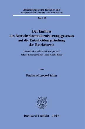 'The Influence of the Betriebsrätemodernisierungsgesetz on Works Council Decision-Making. Virtual Works Council Meetings and Data Protection Responsibility': The study examines the impact of the Betriebsrätemodernisierungsgesetz on works council decision-making. It focuses on the permanent authorization of virtual works council meetings (§§ 30, 33, 34 BetrVG) and the new regulation of data protection responsibility (§ 79a BetrVG). The analysis shows that virtual meetings increase the flexibility of works council work, while simultaneously posing risks to uninfluenced decision-making. In particular, the assignment of data protection responsibility to the employer affects key structural principles of works council law. The study concludes that virtual meeting formats should be further developed, while data protection responsibility should be assigned to the works council itself.
