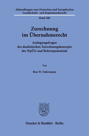 'Acting in Concert in Takeover Law. Interpretation under the Dual Attribution Concept of the German Takeover Code and a Reform Proposal': Public takeovers always involve the cooperation a high number of different entities, which raises complex attribution issues. The relevant regulatory framework of the German Takeover Act is beset by two major problems: the dualistic attribution concept leads to uncertainty about the implementation of the rules and is also overly restrictive. Both issues burden bidders and complicate takeover proceedings. This thesis interprets the applicable attribution concept, identifies solutions de lege lata and develops a reform proposal based on comparative law considerations.