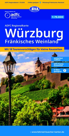 BVA ADFC Regionalkarte Würzburg Fränkisches Weinland 1:75.000 - mit Tagestourenvorschlägen, reiß- und wetterfest, E-Bike-geeignet, GPS-Tracks-Download