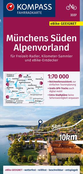 KOMPASS Fahrradkarte 3337 Münchens Süden, Alpenvorland 1:70.000 - reiß- und wetterfest mit Extra Stadtplänen